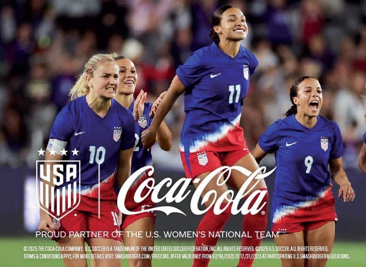 When the U.S. Soccer men’s or women’s team wins or ties, YOU win too! Celebrate with a delicious Smashburger and enjoy a FREE Coca-Cola with your burger purchase in-restaurant only.